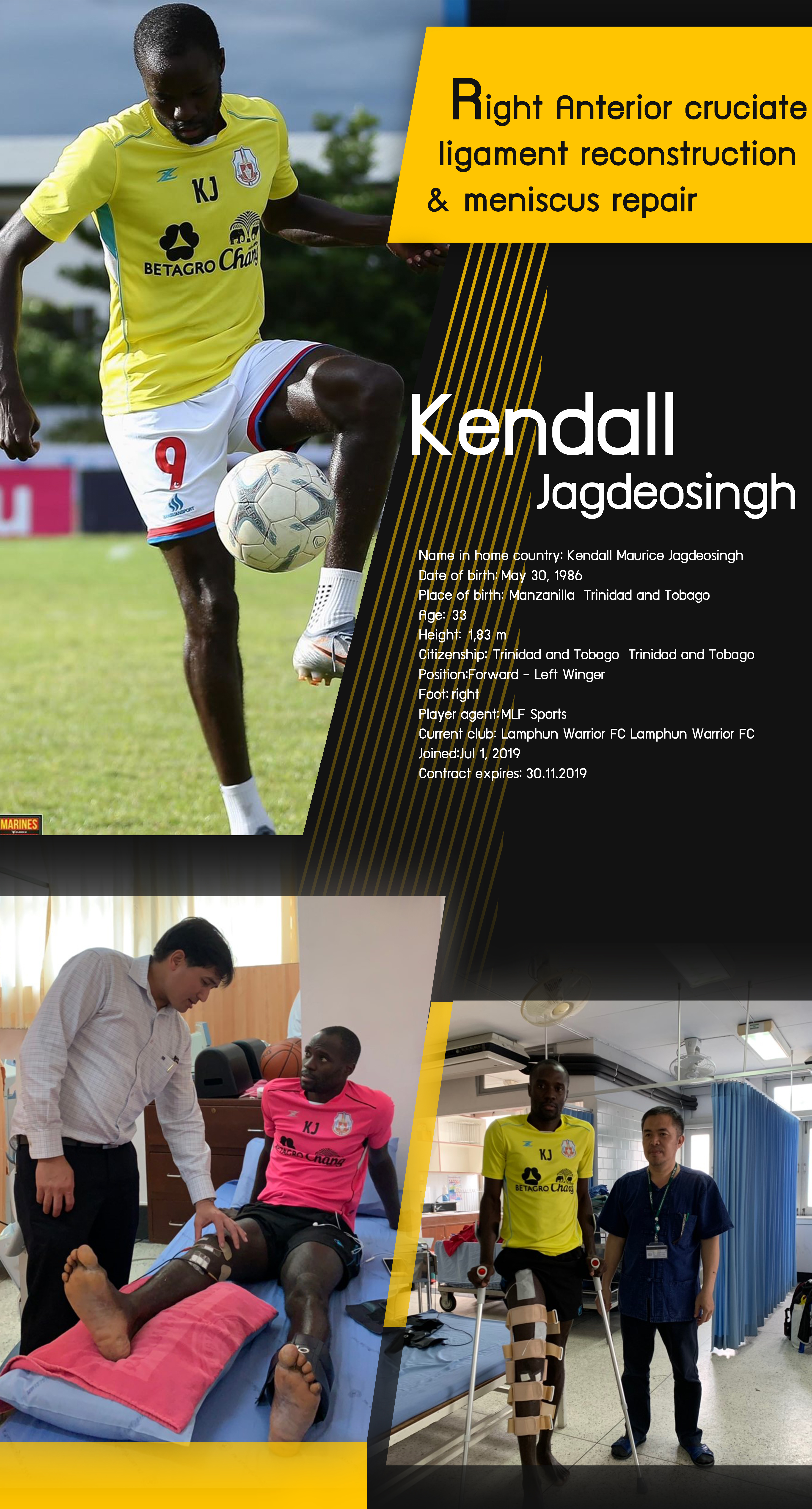 Kendall Jagdeosingh เข้ากับการรักษา Right Anterior cruciate ligament reconstruction & meniscus repair กับทาง Chiang Mai Orthopedics Sports medicine & Physical Therapy Center เมื่อเดือนตุลาคมที่ผ่านมา การรักษาผ่าตัดของ Kendall Jagdeosingh สำเร็จไปได้ด้วยดี และกำลังอยู่ในขั้นตอนการกายภาพบำบัดต่อไป